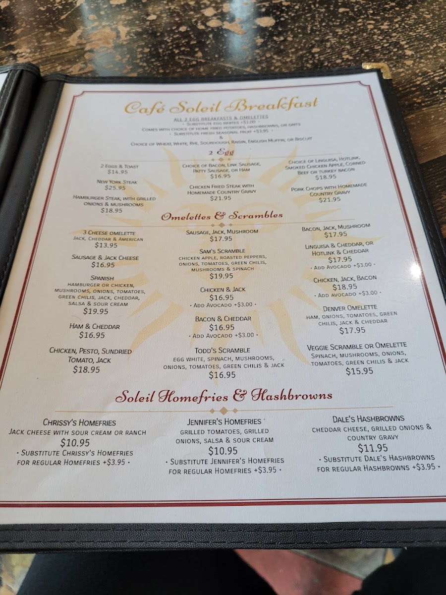 The menu at Cafe Soleil is a dream come true for breakfast enthusiasts, whether you crave traditional favorites or plant-based options. Indulge in their signature dishes like the Spanish Omelette for $15.95, filled with colorful peppers and zesty spices, or savor the rich flavors of their 3 Cheese Omelette for $11.95. With delectable sides like the warm, flaky biscuits and savory gravy that customer Mercedes Pelayo can’t stop raving about, you’ll want to upgrade your experience with crispy hashbrowns or home fries.