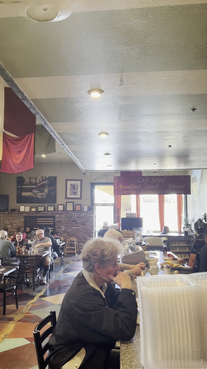 Customer reviews reflect the warmth and communal spirit present at Cafe Soleil. Mark Kaplan applauds the restaurant's excellent vegan offerings and strong coffee, noting that it’s become a tradition for him when in the area. Bill Reichman describes the eatery as a real classic diner, full of generous portions and an inviting atmosphere reminiscent of the 60s and 70s style diners but enhanced by a modern touch.